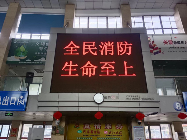 11月9日是第34个“全国消防日”,今年的“全国消防日”主题为“全民消防、生命至上”。当日,安徽运泰芜湖汽车站聚焦人员密集场所消防安全特点,组织开展系列宣传活动,筑牢出行安全防线。活动现场,工作人员在售票厅设置宣传台,并通过电子屏滚动播放消防宣传标语以及火灾报警技巧、初起火灾扑救方法以及火场逃生要点等相关知识。(吴乐鹏 陈犇 文/摄)