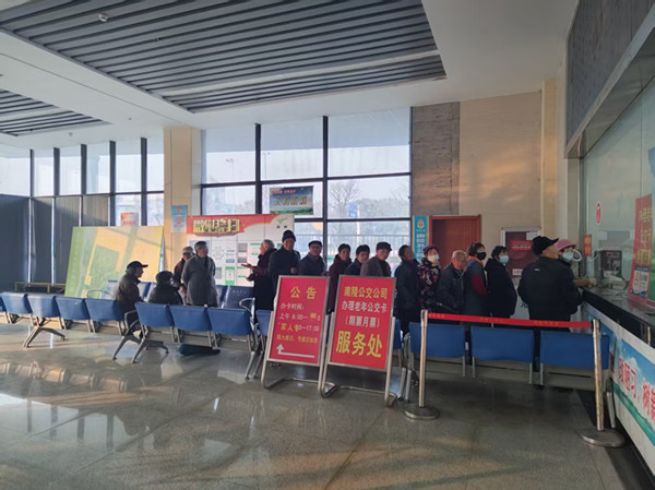 临近年末,南陵公司售票大厅前来办理老年卡年审业务的老年朋友排起了长队。为方便老年人办理年审业务,落实“我为群众办实事”,该公司采取午休时段服务不打烊,服务不间断的措施。该公司还通过增加年审设备,增设座椅,放置醒目标识标牌等一系列便民配套设施,进一步提升公交为民服务能力。(陈若惠 文/摄)