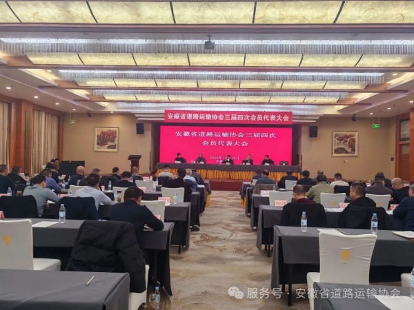 2025年12月18日,安徽省道路运输协会第三届第四次会员代表大会在合肥召开,会议总结年度工作,研判行业形势,共商转型发展大计。省交通运输厅综合运输处一级调研员司武国,省道路运输管理服务中心主任彭道月、副主任朱路明,协会会长钱军等出席会议。