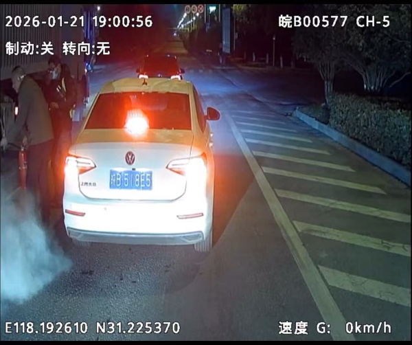 1月21日晚,芜湖市弋江区峨溪路与洋沙交叉口处,一辆大货车尾部突然冒出白烟,空气中弥漫着橡胶燃烧的焦糊味,大货车驾驶员正在车旁焦急万分。此时,安徽省江南长运繁昌客运公司驾驶员蔡涛师傅驾驶皖B00577大巴车载着乘客途经此处,蔡涛师傅没有丝毫犹豫,立即按照应急处置规范平稳停车、打开双闪警示灯并向乘客简要说明情况后,迅速取下随车配备的灭火器冲向起火货车。