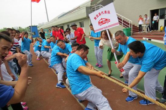5月17日,繁昌运通出租车公司和新长城出租车公司组织参加全市出租车行业趣味运动会。在滚轮胎、旱地龙舟、奔跑吧的哥的姐、拔河和羽毛球等5个单项比赛中,参赛选手努力拼搏,繁昌运通出租公司代表队夺得拔河比赛第一名,新长城出租车公司获得羽毛球比赛女单第一名、滚轮胎比赛第二名、奔跑吧的哥的姐比赛第三名的好成绩,为企业赢得了荣誉。(韩忠荣 李娜 文/摄)