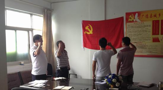 6月9日,在建党94周年来临前夕,广德城乡公交公司党支部举行新党员入党宣誓,并给新党员佩戴党徽。公司支部李书记对两名新党员提出要求,希望他们在今后的学习、工作中率先垂范,以实际行动践行自己的誓言,把入党誓词作为终身追求、终身修养、终身实践。(沈州 肖昕云 文/摄)
