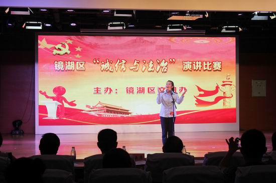 6月30日上午,镜湖区文明办举办“诚信与法治”演讲比赛,来自区境17家企事业单位选手参加比赛,芜湖汽车客运站员工吴玉婷代表运泰集团公司参赛并获得二等奖。 本次在镜湖区文体活动中心举办的演讲比赛,旨在大力弘扬法治和诚信观念,使全社会崇尚法治,使自觉守信成为风气,成为习惯。芜湖汽车客运站选手吴玉婷的演讲以该站“真情服务班组”的故事为素材,内容紧扣活动主题,声情并茂的演讲获得了现场评委和观众的好评。(吴乐鹏 文/摄)