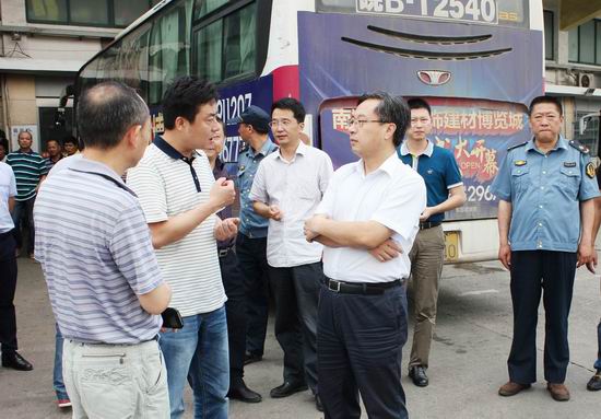 7月1日下午,芜湖市市委常委、副市长曹哨兵,市政府副秘书长史高江来芜湖汽车站检查,运泰集团客运事业部总经理钱军等陪同。 曹副市长来到客运站站场,详细了解该站车辆发车、安全叮嘱、站场管理等情况并表示肯定。曹副市长走上一辆客车,与驾驶员交谈,叮嘱驾驶员要注意行车安全,务必做到“五不两确保”,切实保障广大乘客的生命财产安全。(吴乐鹏 潘朝慧 文/摄)