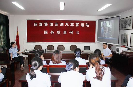 7月21日下午,芜湖汽车站召开服务质量例会。会议通过观看该站监控视频集锦的形式,对近期服务质量方面所出现的问题进行分析,明确整改要求、规范工作行为并现场组织学习讨论活动,巩固成绩、吸取教训、查找不足,切实提高工作人员责任意识与服务水平。(吴乐鹏 文/摄)