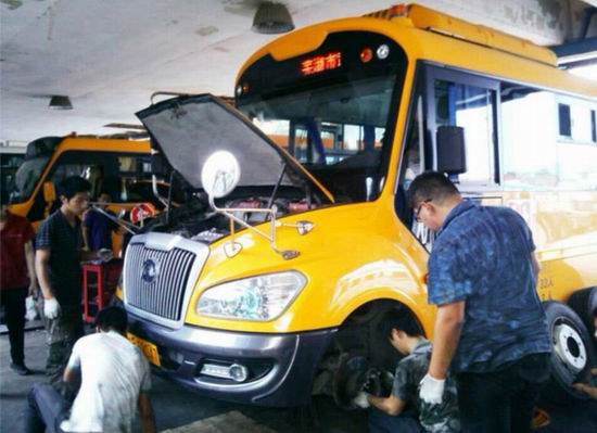 新学年开学在即,日前,运泰汽修公司主动联系承修的多家学校,及时组织汽修骨干力量,按照行业、厂家标准,分批次对十余辆校车关键部件进行检测和专业维护,以保障校车的各项技术性能状态良好,确保学生乘车安全。(余琦 文/摄 )
