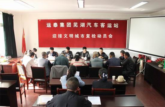 10月13日下午,运泰集团芜湖汽车客运站召开迎接全国文明城市复检工作动员会,支部书记蒋文主持会议,集团党委书记曾道启出席会议并讲话。 会议传达了市委、市政府和上级有关部门关于复检工作的指示精神,全面部署我站迎接复检的各项工作。会议要求各部门提高认识、高度重视,对照新测评标准,就所承担的工作任务逐一疏理排查、落实整改,要加强宣传力度,积极营造浓厚的创建氛围,齐心协力确保迎复检取得好成绩。(张莹 吴乐鹏 文/摄)