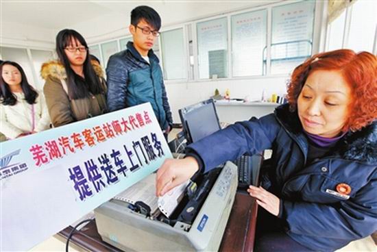记者从芜湖汽车站了解到,从1月7日开始,该站将连续5天为安徽师范大学、皖南医学院、安徽工程大学、芜湖职业技术学院等高校提供“上门送票”的服务。“从2009年开始,车站已经先后累计送票到高校50多次,深受学生好评。此次预计送票数将达3000张。”