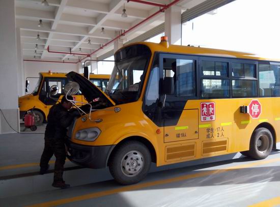 新春开学在即,运泰汽修公司日前主动联系承修的多家学校,及时组织汽修骨干力量,按照行业、厂家标准,分批次对十余辆校车关键部件进行检测和专业维护,以保障校车的各项技术性能状态良好,确保学生乘车安全。(余琦 文/摄 )