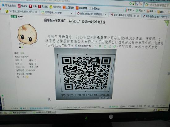 日前,“安行巴士”微信公众号全面上线。该微信公众号由运泰集团牵头省内6家客运公司联合携程网、宁波平易软件公司共同组建的安徽易出行信息技术股份有限公司创建推出,市民关注此公众号即可购汽车票,无需到车站排队买票,使得百姓的出行更为便捷。
