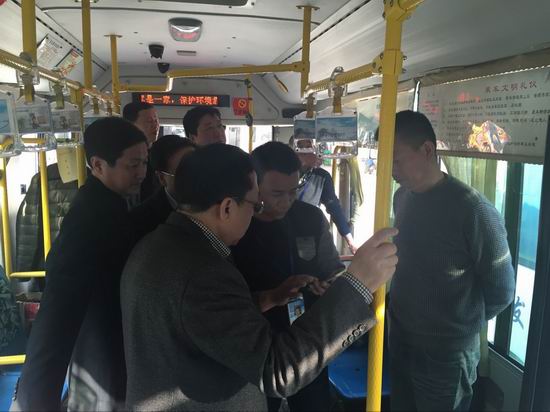 3月2日,省交通运输厅副厅长徐敬启、省运管局局长晏少鹤在广德县委常委、统战部长邹大坤,县人大副主任胡建平,县交通运输局局长张绍玉等陪同下,来我司调研城乡公交一体化工作开展情况。 调研组听取了公司安全生产运营工作汇报,现场观摩掌上公交、公交IC卡、智能调度工作演示,并详细了解车辆安全配置、驾乘人员服务质量及公司的发展状况。徐副厅长一行对广德公司信息化发展运用及管理工作表示肯定,并要求继续做好相关工作,确保为市民提供安全便捷的服务。(梁金 肖昕云 文/摄)