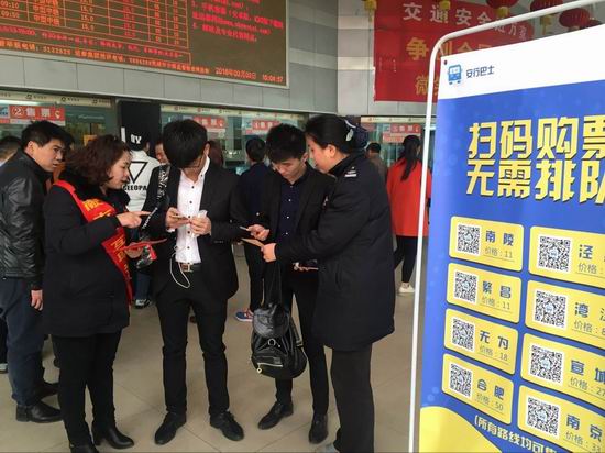 日前,“安行巴士”公众号推广工作已在运泰集团芜湖汽车客运站全面展开。该站在服务台等场所设置了广告牌并安排专人现场讲解,售票窗口等处也通过张贴二维码等形式以提高乘客的知晓率,此外该站还组织员工关注此公众号并转发朋友圈进行推广。经过多种形式的宣传,公众号每日关注量以及下单量均有显著提高。(吴乐鹏 王栋 文/摄)