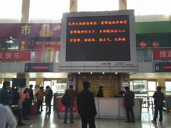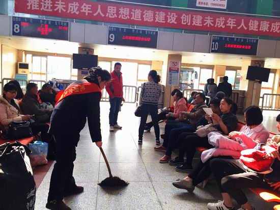 3月5日,是第53个学雷锋纪念日。为了继承和发扬雷锋精神,弘扬“奉献、友爱、互助、进步”的时代新风,芜湖汽车站志愿者开展了形式多样的学雷锋志愿服务活动。志愿者们在站前广场,售票、候车大厅清扫垃圾,帮助旅客搬运行李,为旅客提供咨询、引导,为老弱病、残、孕等特殊旅客提供帮助,用实际行动弘扬和践行雷锋精神。(张莹 文/摄)