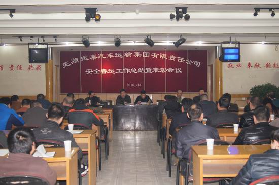集团副总经理汪俊杰主持会议,集团客运事业部总经理助理王胜代表集团春运办作2016年安全春运工作总结报告。报告指出:2016年春运,各单位坚持“安全第一、保障有力、方便快捷、服务至上”的总体要求,以安全生产、优质服务为核心,以疏运保障为重点,实现了安全生产形势平稳、无旅客滞留和服务质量投诉。面对今年“高铁严重冲击,私家车迅猛增长和市场环境监管困难”等诸多不利因素,各级领导恪尽职守、靠前指挥,精心组织、周密安排,集团董事会成员深入春运生产一线,督导大年三十运输保障工作,做到了各级车站无一名旅客滞留,树立了运泰负责任的社会形象。春运期间集团严把安全源头,严格检查监控,严肃违规查处;加强机务管理,为春运提供后勤保障;积极调运车辆,组织加班、包车、旅游运输;开通多种形式的售票方式,组织上门运输服务。集团工会继续开展春运安全文明优质服务竞赛,为旅客提供优质服务。春运40天里,广大员工舍小家、顾大家,忠于职守,把集体的利益摆在第一位,在春运舞台上集中展现了践行企业价值观、弘扬企业精神的风采。