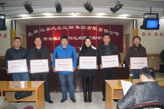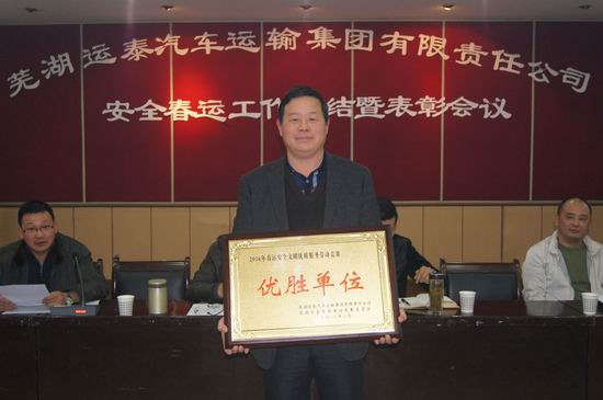 集团党委书记、工会主席曾道启宣读春运工作表彰决定,芜湖县客运分公司获得2016年春运安全文明优质服务竞赛优胜单位,繁昌运通公交公司、南陵运山公司获得春运服务质量优胜奖,运泰修理公司获得春运保障优胜奖,芜湖县客运分公司、芜湖汽车站、芜湖客运分公司、广德城乡公交公司、运泰涉外公司、城市候机楼公司获得春运安全优胜奖。王圣海等52名同志荣获本次竞赛的优秀站务员、乘务员、驾驶员、修理工和管理人员称号。