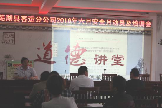 6月1日下午,芜湖县客运分公司召开全体员工参加的安全生产月动员和培训会。 今年6月是全国第十五个安全生产月,该公司安全科围绕“道路客运安全年”活动,加强安全生产管理工作,确保行车安全。3月至5月,该公司每月举办两次安全教育课,通过加强宣传、开展客运车辆排查、驾驶员家属座谈会等形式,全面落实安全责任,该公司同时加大自检力度。通过一系列安全措施的实行,1-5月份集团内部安全考核中,芜湖县客运分公司安全状况排第一位。(王磊 文/摄)