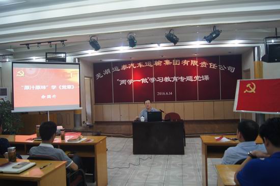 6月14日下午,集团举办“两学一做”学习教育专题党课。集团党委书记曾道启,副书记秦增荣,党委委员叶松、徐丹林,副总经理汪俊杰,客运事业部总经理钱军,所属各支部书记和党员代表,芜南繁三县客运公司党建工作负责人等70人参加上党课。