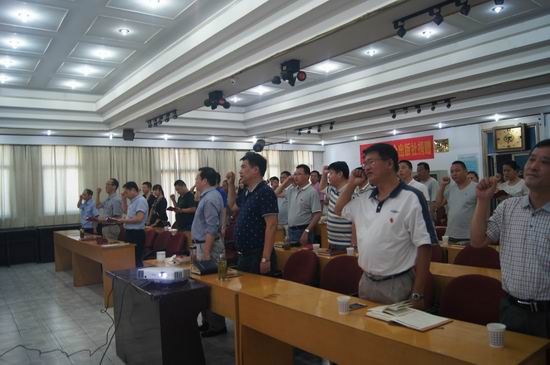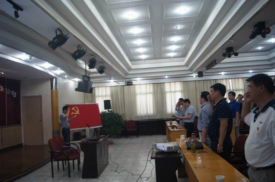 上党课结束后,集团党委书记领誓,全体党员向党旗宣誓,重温入党誓词。“……为共产主义奋斗终身”,铿锵有力的誓词回响在会议大厅,激荡在每个党员的心里。(栾杰 文/摄)