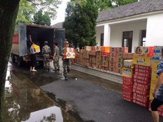 重灾区无为县受灾面广,受灾程度百年一遇。灾情发生后,广大官兵冲锋在前,奋力解救受困群众、连夜加固河堤,是无城安危的守护者。为表达对抗洪抢险部队战士的感激之情,日前芜湖市报废汽车回收公司无为县分公司购买了6台甩干机和3台烘干机以及50件红牛、100件饮料、60箱饼干和面包送往抗洪一线,慰问奋战在一线的官兵。(黄文 文/摄)