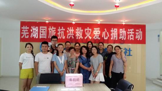 安徽运泰所属单位近日纷纷组织向我市灾区人民捐款,先期组织或以多种渠道参与捐款的有运泰广告公司(22人、7100),新长城公司(60人、7100),汽车报废公司(28人,20000),南陵公司(277人、26995),修理公司(20人、2100),芜湖县公司(46人、4895),芜湖县驾校(46人、3260),城市候机楼和国旅公司(55人、10000)。参与集中捐款的有运泰物流公司(23人、3300),捷运公司(11人、1250),运泰驾校(74人、6300),芜湖汽车站(160人、4155),公司机关(67人、22200),旅游集散中心(8人、1400)物资公司(4人、210),芜湖客运公司(65人、3700),涉外公司(32人、3250)。截止到7月15日,共计有17家单位998人参与,捐款总额127215元。(栾杰 何芳 王俊 任王惠 张莹 文/摄)