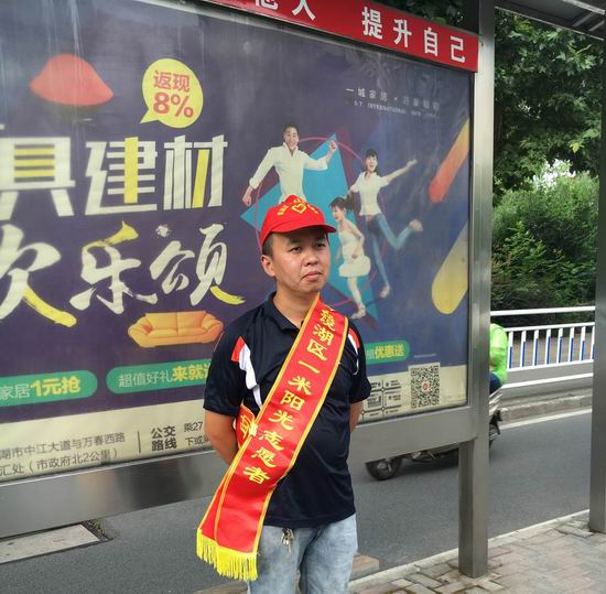 8月3至5日,运泰涉外公司志愿队组织参加芜湖市文明城市创建劝导活动,在公交站定点安排志愿队员轮流值勤,劝导市民遵守公共秩序、文明出行。(袁广宣 舒健 文/摄)