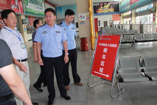 为切实做好G20峰会安保工作,芜湖县客运分公司制定了安保方案,客运中心制作宣传牌,设立专用检票口,旅客携带的包裹须经安检仪检查。公安、运管还派驻人员配合芜湖县客运中心的安保工作。8月22日上午,芜湖县公安、运管等部门负责人来到芜湖县客运中心检查指导,他们在实地检查了客运中心人防、物防设施落实情况,详细了解了进入杭州客运车辆检查及核对旅客身份情况,要求客运公司强化源头安检措施,确保G20峰会安全。(胡荣光 文/摄)