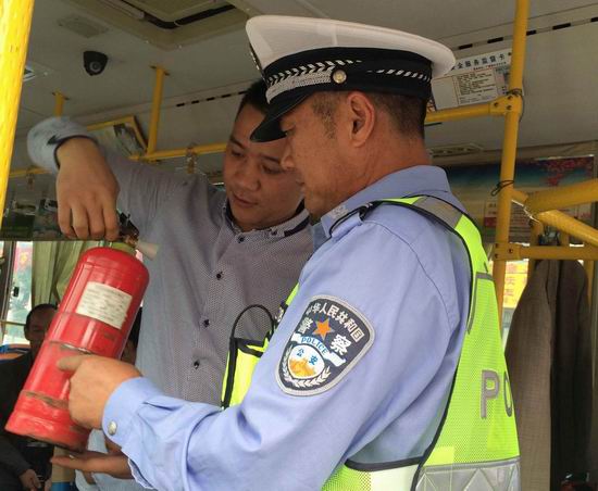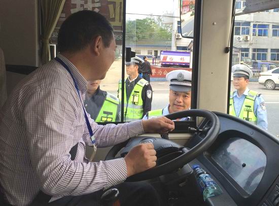 为响应安徽运泰秋冬季节“行车安全劳动竞赛活动”,10月24日下午,广德城乡公交公司联合交警上路对所属车辆的技术状况、设施设备、驾驶人各类证件等进行全面排查,最大限度预防和减少道路交通事故。(李红芳 文/摄)
