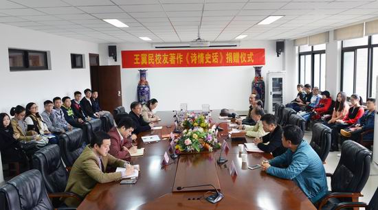 11月18日下午,安徽运泰公司董事长著作《诗情史话》捐赠仪式在安徽大学经济学院会议厅举行。安大校友企业家协会副会长朱玉峰,安大经济学院党委书记顾广玲和副书记夏杰,芜湖日报报业集团党委书记、社长刘光,安徽运泰公司党委书记曾道启和安大学生代表出席捐赠仪式,曾道启受公司董事长委托向经济学院等部分院系的学生赠书3880册。