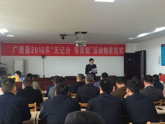11月20日,是第11个“世界道路交通事故受害者纪念日”。当天,安徽运泰公司安全管理部组织相关单位30多名安全管理人员和驾驶员参加芜湖市“第12届驾驶人遵章守法无记分有奖励活动”,广德城乡公交公司组织人员参加广德县交管大队举办的2016年机动车“无计分有奖励”抽奖,通过这一活动,引导和激励广大机动车驾驶人养成遵章守法、文明行车的良好习惯。(刘冬 李红芳 文/摄)