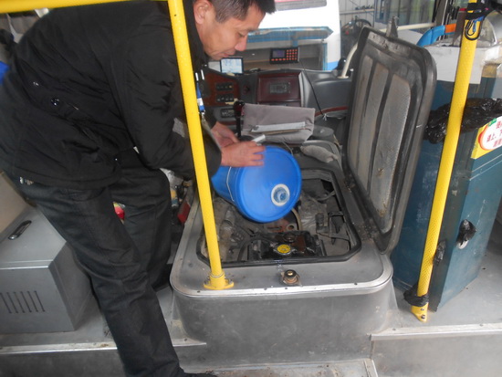 11月22日起受强冷空气影响,皖南山区气温降幅较大。广德城乡公交公司机务科根据天气变化,在寒潮来临之前订购防冻液,做好防寒防冻准备,对山区车辆优先加注防冻液。机务和维修人员检查车辆是否存在漏水现象并及时维修,保证了车辆技术状况,使车辆在冬季安全运营。(汪普 清喻琢 文/摄)