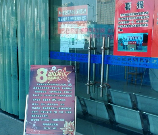 为进一步扩大招生力度,提高驾培市场竞争力,芜湖县安达驾校于12月份开展“八周年校庆”学车大优惠活动。活动期间报名学员,直接给予最大幅度的优惠。目前该校员工通过短信、QQ群、微信群和网站等多种渠道宣传本次活动。活动开展几天来,学员报名踊跃,日报名人数较上月有大幅度增加。(汪小铁 文/摄)