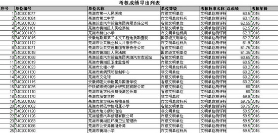 芜湖市文明创建动态管理系统2016年考核成绩今日公布,安徽运泰在满分60分基础分、5分奖励分中得分62.55,在镜湖区境排名第三。这是我司自2012年市文明创建动态管理系统启用以来,两次排名第1和一次排名第2后又一好成绩。所属芜湖汽车站、修理公司位列第10和22,排名靠前。 据悉,在芜湖市主城区镜湖区考核记分的75家国家级、省级、市级文明单位中,企业数只有6家,我公司及所属两家单位是仅有的3家民营企业。(栾杰)