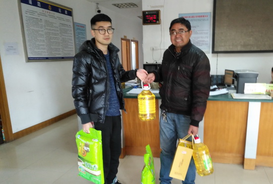 1月20日上午,春节来临前,新长城公司开展慰问困难驾驶员活动。 朱家富两年前患脑癌,两个孩子还在读书,一家人生活来源只有他妻子开出租车的微薄收入。郭斌患尿毒症六年,大儿子17岁,小儿子才10岁,还有70多岁的父母,他妻子因照顾老人孩子没有上班,一家人也就靠郭师傅开出租车。公司给两个困难驾驶员发放了大米、牛奶、食用油等物品,并勉励他们鼓起勇气、保重身体、战胜困难。(杨天 文/摄)