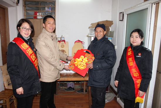 1月24日上午,在新春佳节即将来临之际,安徽运泰芜湖汽车站青年志愿者由支部书记蒋文领队,带着春联和牛奶、饼干、食用油等慰问品来到车站社区困难居民王义保、马之翠家中进行慰问。王义保和马之翠两位老人都年过七旬,儿子和儿媳在十几年前的车祸中不幸遇难,留下一个小孙女跟着两位老人生活,家庭很困难,芜湖汽车站的慰问给他们带来浓浓暖意。(吴乐鹏 文/摄)