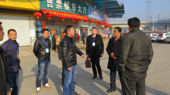 1月26日上午,繁昌县副县长胡清照在县交通运输局局长高峰等有关部门负责人陪同下,来到运通公司检查春运工作。在客运中心大厅,胡副县长查看了春运旅客客流情况,听取了公司经理关于春运期间安全管理、应对恶劣天气预案、运力组织以及近阶段经营情况等相关工作汇报。胡副县长对繁昌公司安全、服务等工作表示肯定,并要求大家做到“两确保”, 确保春运安全,确保每个旅客都能及时回家过年。