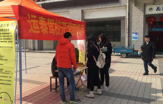 2月14日,是安师大新学期报到的日子,运泰驾校利用学生集中时间在食堂、广场等学生密集区设立展台进行招生宣传。该校在此次活动中设置了报名优惠和购物卡、平板电脑奖励,3个以上团体报名送平衡动力车一辆,当天有60多人报名,咨询登记和预报名的超过100多人。(任王慧 文/摄)