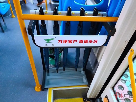 另外,为了更好打造“党员示范线”车辆,公司还在党员示范线的公交车内安装了“便民伞”和“便民服务箱”,市民可以根据需要自行取用。