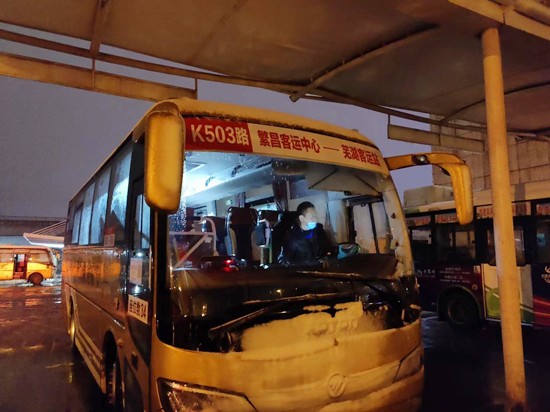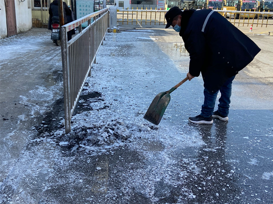 公交湾沚区分公司做好低温雨雪冰冻天气的应对工作,召开安全会层层部署,各车队安全人员跟车察看路况,发现问题及时消除隐患,智能平台发送安全语音提示驾驶员注意路面结冰情况。该公司还组织人员清除进出站口积雪,同时做好防冻物资的储备。