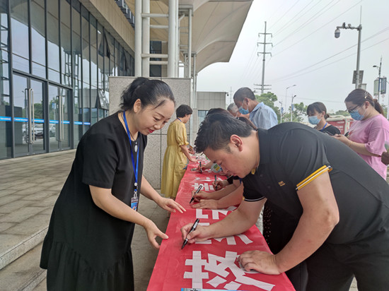 6月16日上午,为认真做好全国安全生产月工作,营造安全生产宣传教育氛围,广德城乡公交公司举办安全月宣传咨询暨签名活动。本次活动围绕“落实安全责任、推动安全发展”主题,通过发放宣传资料和安全承诺签名等形式,起到安全宣传和教育作用。(李红芳 吴雨航 文/摄)