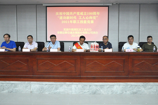为隆重庆祝中国共产党成立100周年,由镜湖区总工会主办、安徽运泰交通发展股份有限公司承办的庆祝建党100周年“工人心向党、建功新时代”2021年职工技能竞赛于6月16日至17日分别在安徽运泰总部和江南驾校举办。市总工会二级调研员梁立军,市总工会宣传部部长徐飞,镜湖区总工会副主席徐雪冬、毕建财,镜湖区赭麓街道党工委副书记周桂亮,安徽运泰党委书记、工会主席叶松和副总经理王胜等出席6月16日上午的启动仪式。在启动仪式上,全国劳动模范、芜湖奇瑞出租汽车公司驾驶员马本萱作“不忘初心党史学习心得宣讲”,市总工会向安徽运泰工会进行了赠送图书活动,随后各参赛选手参加理论考试。6月17日全天,进行了赛程的实操比赛。