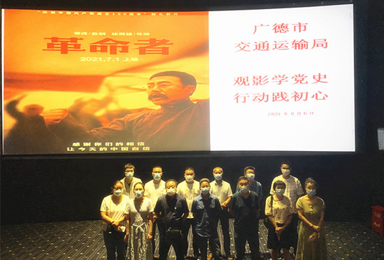 为庆祝中国共产党成立100周年,深入推进党史学习教育,深刻领悟党的光辉历程和伟大贡献,弘扬爱国精神,8月6日下午,广德市交运局组织广德公交公司党支部、质监站党支部开展党史学习教育红色观影活动,党员干部集体观看红色影片《革命者》。 影片再现了革命者生死关头的坚定意志和信仰追求,观影后广大党员纷纷表示,要发扬红色传统,传承红色基因,全身心投入党史学习教育活动中去,切实做到学有所思、学有所悟、学有所得。(王颖 肖昕云 文/摄)