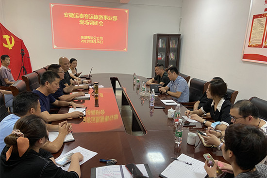 8月26日下午,安徽运泰客运旅游事业部在芜湖汽车站召开现场调研会,公司副总经理钱军、王胜和运务部、安全管理部负责人,芜湖汽车站经营层和各科室负责人参会。 会上,芜湖汽车站站长李汝福汇报了1-7月份该站生产经营情况以及下一步工作计划。钱军对该站各项工作作出点评,提出“事前管理到位,事后处理到位”等优化管理细节要求,要细致分析客流情况、处理好投诉,并对该站发展校车、拓展非市际班线、旅游下乡、非医疗救护车等业务举措提出意见和建议。(吴乐鹏 文/摄)