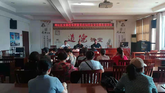 新学年开学在即,校车安全问题备受重视和关注。8月30日下午,芜湖运泰公交湾沚区分公司组织召开校车安全宣传教育培训会,对46名校车驾驶员、陪管员讲解校车管理条例,明确工作职责,发放“致驾驶员一封信、陪护员工作职责”等宣传资料。 培训会结束后,该公司组织与会人员安全常识、业务知识“应知应会”考试,并对23辆校车集中开展安全大检查,重点检查车辆刹车、灯光、灭火器、轮胎等安全设备。(王磊 文/摄)