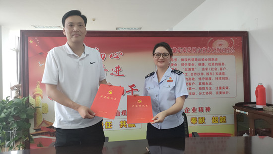 为推进基层党组织建设, 运泰公交繁昌区分公司党支部与繁昌区税务局组织人事股党支部结对共建,推动党建工作再上新台阶。 9月6日下午, 两个结对共建党支部签订《党支部共建协议书》,双方将紧紧围绕“四强”党支部创建目标,结合党史学习教育,着力加强党支部阵地建设、组织建设和制度建设,提升基层党组织凝聚力、战斗力。(王雪妹 文/摄)