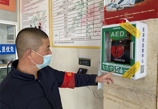 自动体外除颤器又称自动体外电击器、自动电击器、自动除颤器、心脏除颤器及傻瓜电击器等,是一种便携式的医疗设备,它可以诊断特定的心律失常,并且给予电击除颤,是可被非专业人员使用的用于抢救心脏骤停患者的医疗设备。该设备在公共场所的设置,将使突发心脏病的有效急救变得可能。(吴乐鹏 文/摄)