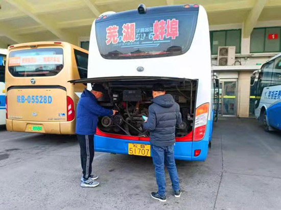 元旦来临前夕,芜湖客运分公司多举措做好节日安全运输工作。 12月28日至29日该公司集中开展了一次车辆安全隐患及车况排查,重点排查车辆安全设备设施和制动、转向、轮胎、雨刮、灯光、空调等方面,检查发现的问题及时整改。12月29日晚,该公司召开节前驾驶员安全生产动员部署学习会,要求驾驶员坚决杜绝“超载、超速、疲劳驾驶、酒后驾驶,强行超车”等行为,做到不抢红灯,时刻注意观察路面、行人和非机动车动态,远离大货车,保持安全车距等。(潘贤雷 文/摄)