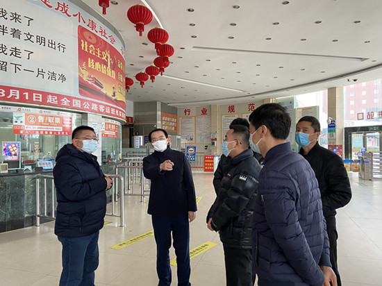 1月20日下午,市政府副市长蔡毅以"四不两直"方式来安徽运泰芜湖汽车站检查疫情防控工作。蔡副市长一行先后来到该站站前广场、售票厅、候车厅、旅客出站口、核酸检测点等区域,实地查看该站安全管理、疫情防控等工作开展情况。安徽运泰芜湖汽车站李汝福站长就该站疫情防控相关措施、细节进行了详细的介绍。蔡毅副市长对该站相关工作给予肯定,并要求该站继续做实做细疫情防控相关工作,确保春运安全有序。(吴乐鹏 文/摄)
