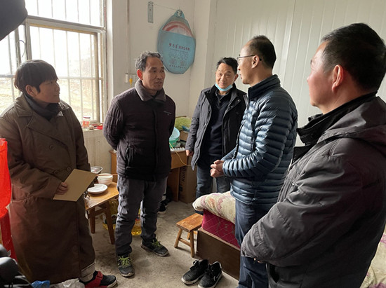 凛冽的寒风挡不住送温暖的脚步。1月28日上午,安徽运泰董事、财务总监徐丹林带队顶着深冬凛冽的寒风,冒着雪花,在无为市双圩村党总支第一书记、驻村工作队队长郭登扬和村党总支书记、村委会主任范业胜等陪同下,看望慰问结对帮扶对象尿毒症患者李良英、李良宽,送去慰问金和新春祝福。 在他们的租房处,徐丹林详细询问了他们近期身体状况、治疗情况和年货的准备情况,鼓励他们坚定信心,克服困难,乐观生活。(叶飞 文/摄)