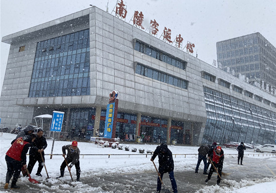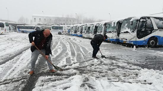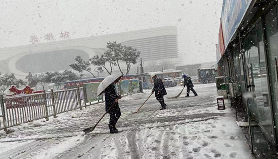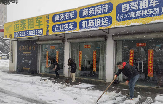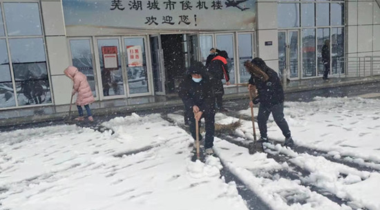 2月7日当天,持续的中到大雪覆盖整个皖南地区。安徽运泰机关、城市候机楼公司、新能源公司、芜湖汽车站、涉外旅游公司、公交湾沚区公司、广德公交公司、江南长运黄山太平汽车站、池州市大运公司、安达驾校、繁昌驾校等10多家单位广大员工在凛冽寒风、冰天雪地中铲雪除冰,保障公共区域通行安全,努力将恶劣天气影响降到最低。(栾杰 徐国庆 张士杰 卞晴 文/摄)
