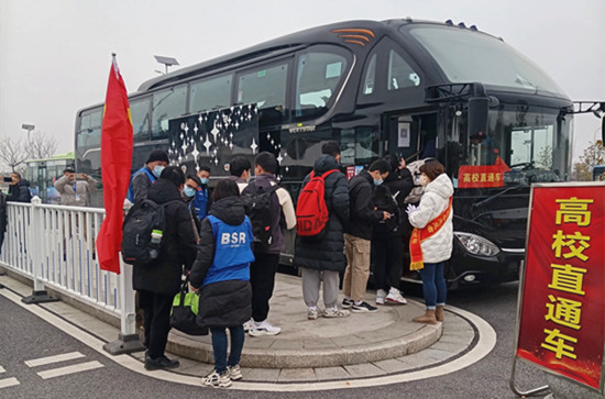 2月19日至20日,安徽信息工程学院学生返校高峰,约有3100人乘高铁抵达湾沚南站。遵照区委宣传部指示精神,运泰湾沚区分公司组织直通车服务,实现点到点接送返校学生。该公司保障运力充足,组织6名志愿者引导学生有序乘车,搬运行李,摆放整齐,广大学生乘车安心、舒心、暖心。(王磊 文/摄)